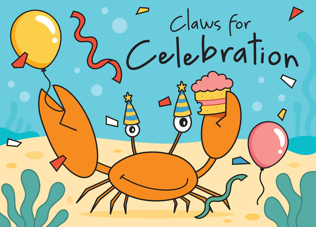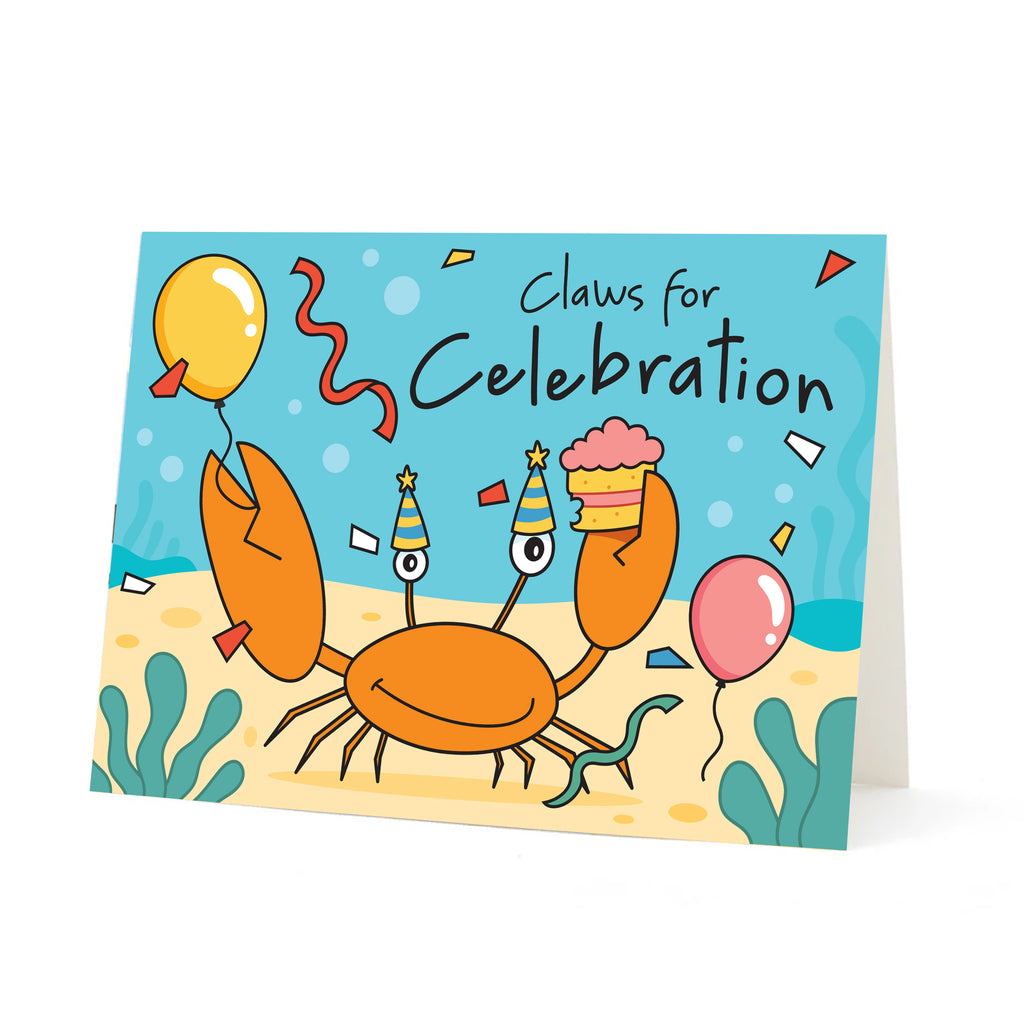A new greeting card bursting with happiness suitable for a birthday, wedding, engagement or any other momentous moment in someone's life. Here at Crab HQ we believe that we should celebrate even the smallest of achievements.